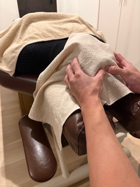 では、頭部、頚部、肩甲骨までマッサージします!!